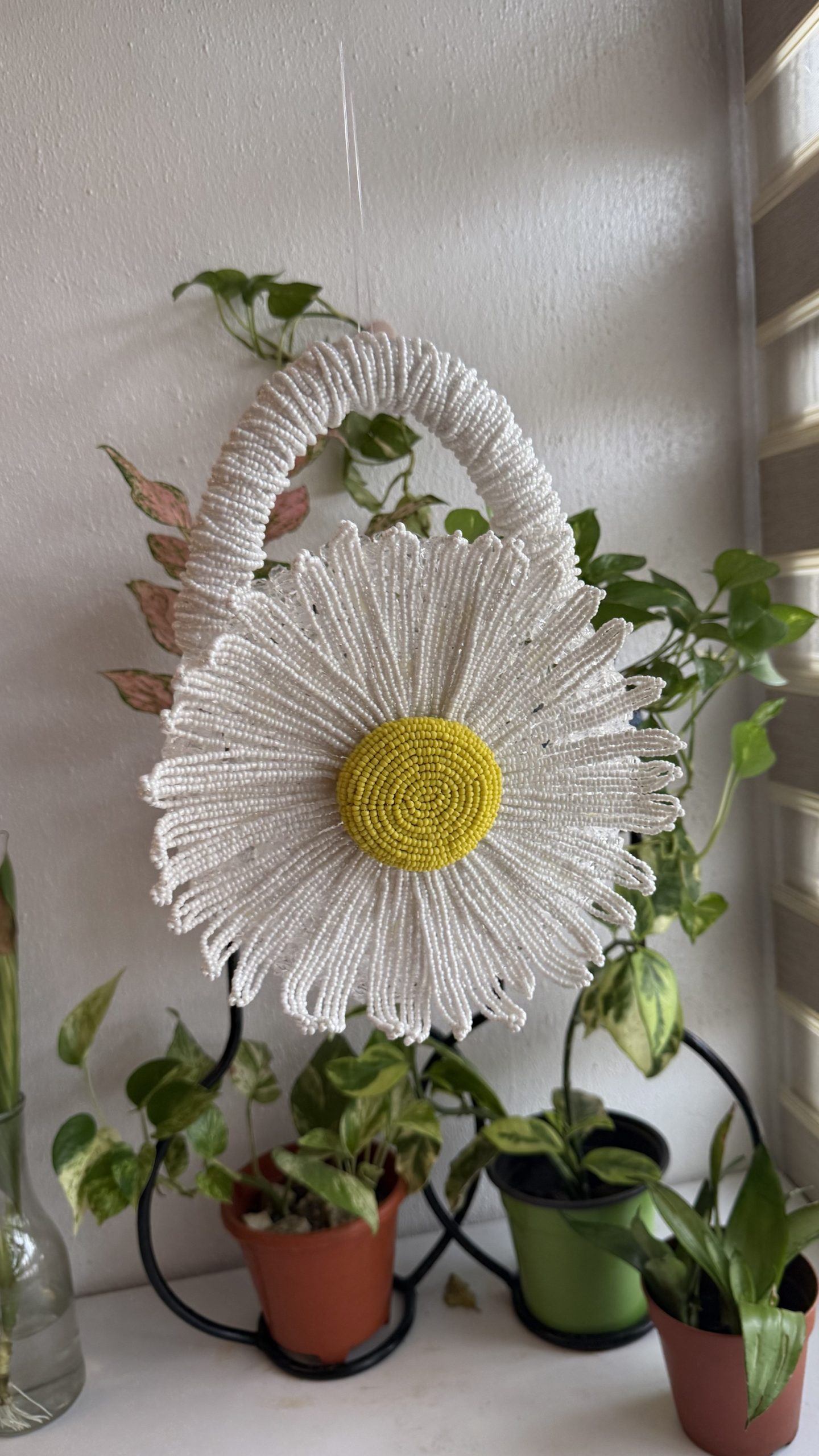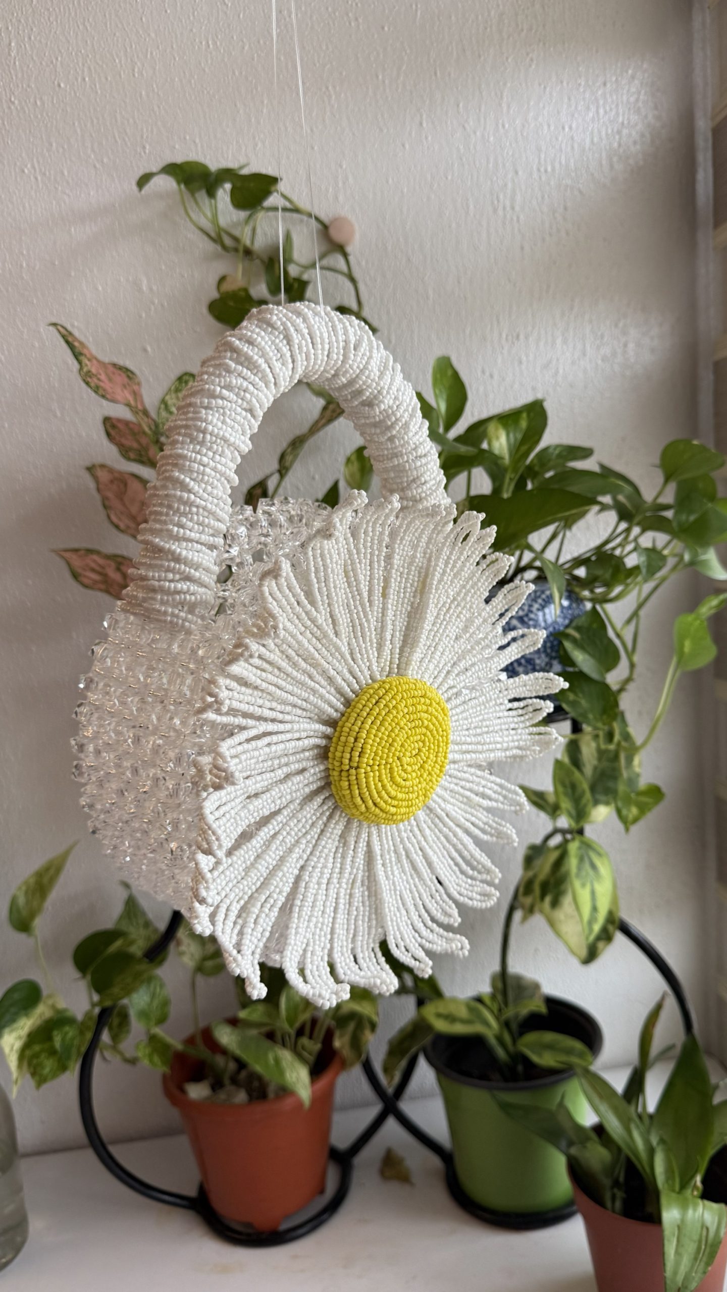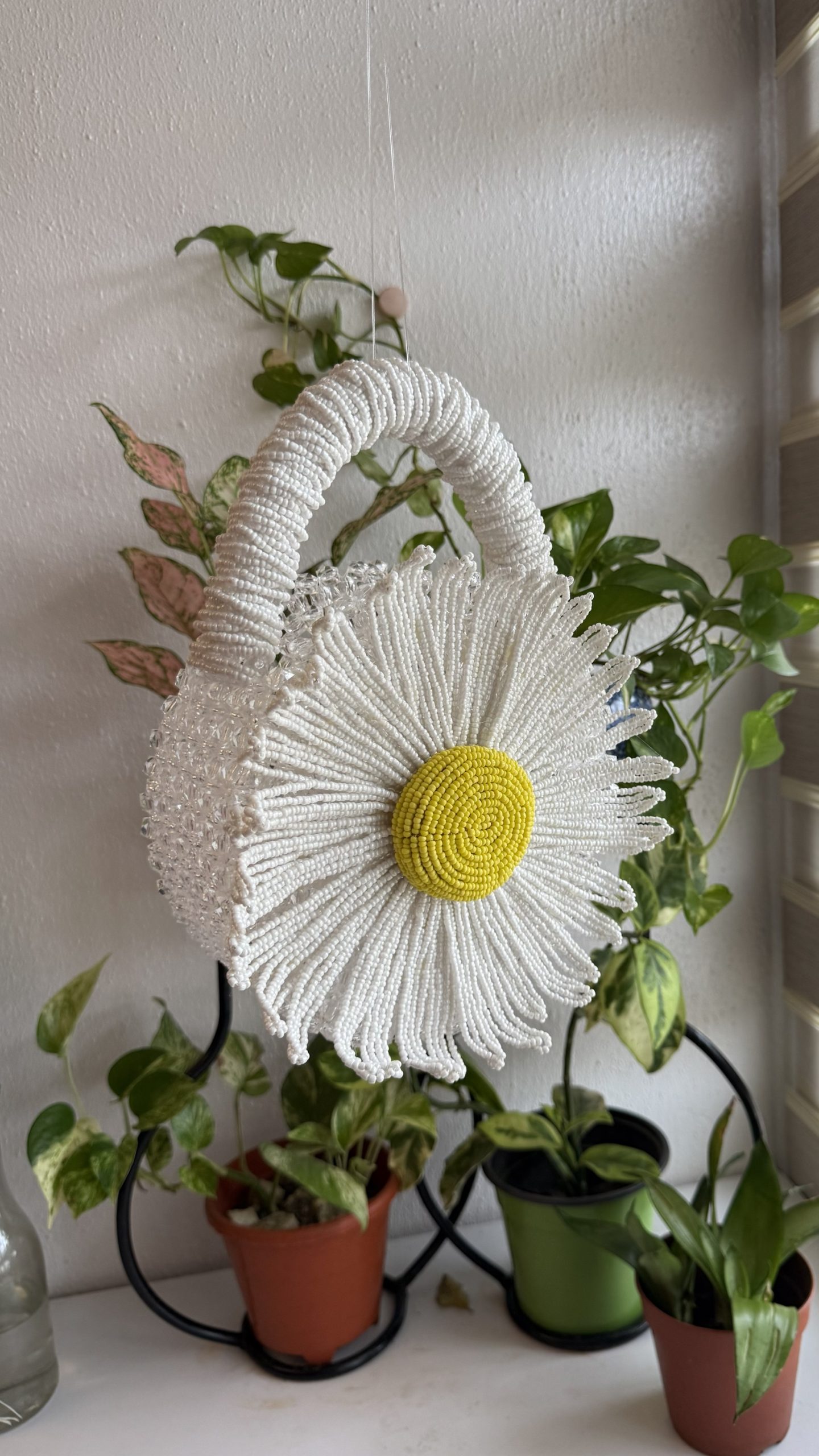 Add a touch of floral elegance with the Round Bloom Bead Bag (Daisy). Shop now for a trendy, handcrafted statement piece you’ll love to carry!