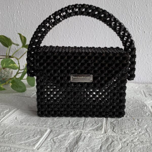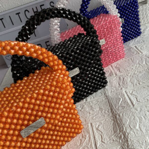 Unique and minimalist handmade marble bead bag designed with bamboo handles